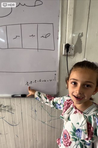 Auch dieses Mal kamen wir gerade rechtzeitig, um einen Alphabetisierungskurs für geflüchtete Kurdinnen aus Syrien zu besuchen. Auch die kleinen Töchter haben sich schon im Schreiben und Malen geübt!