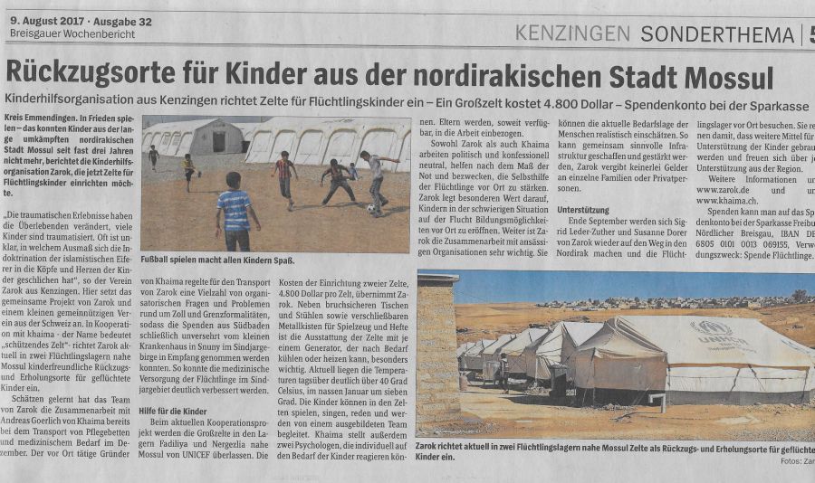 "Child friendly spaces" nahe Mossul Juli bis Dezember 2017