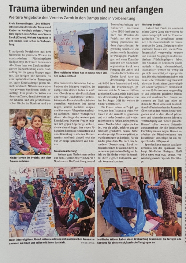 "Trauma überwinden und neu anfangen" Bericht  im Emmendinger Tor vom 13.6.2018