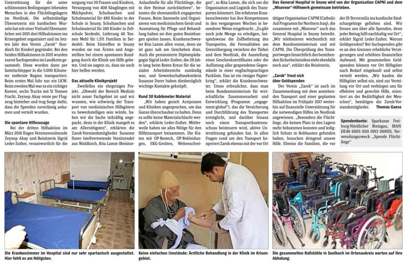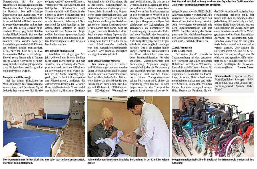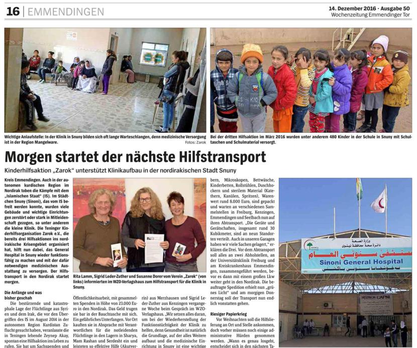 Hilfstransport für die Klinik in Snuny / Nordirak 14.12.2016